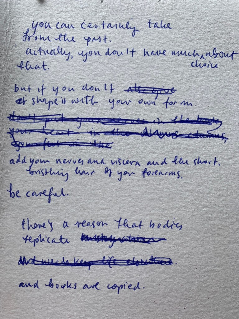I began to realize what I already knew: that patriarchal reasoning goes all the way down, to the letter, to the bone. I had to find ways not to reproduce its grammar in what I said, in what I wrote; in what I did, in who I was.