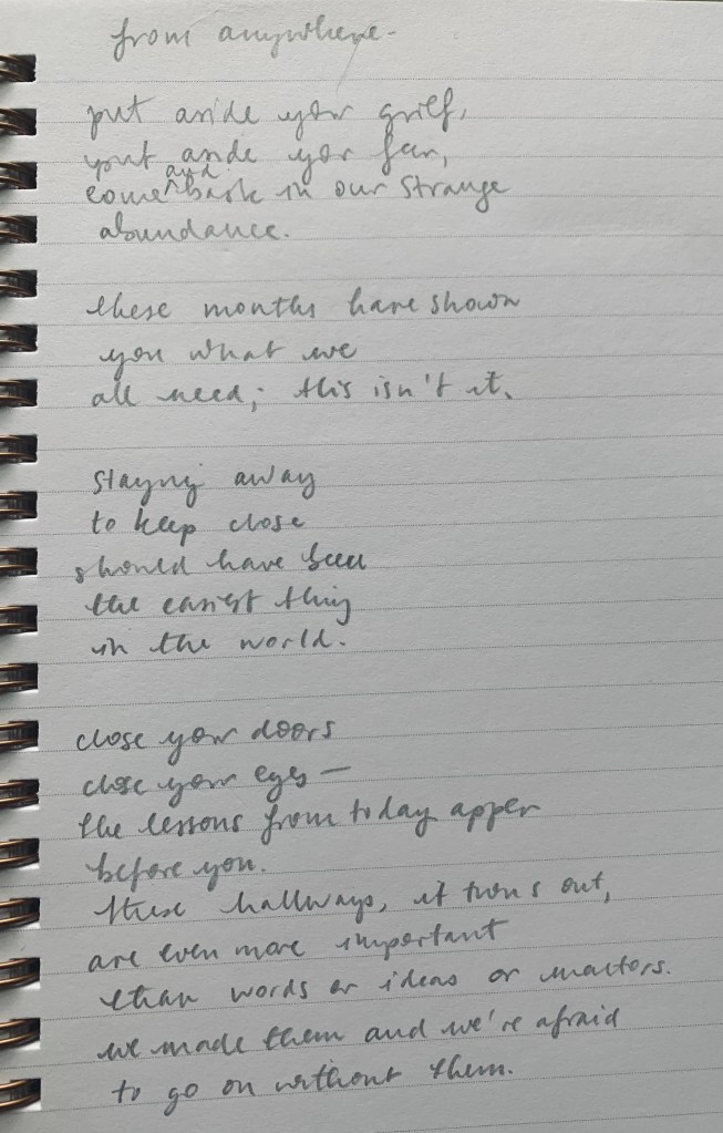 We are living in rupture. Many things are shifting, opening, falling away. What stays and what goes? What inherited beliefs about scholarly and pedagogical practice — ideas and behaviours which never quite sat right with us in the first place — are we going to get rid of? What new words and new thoughts are we going to use?