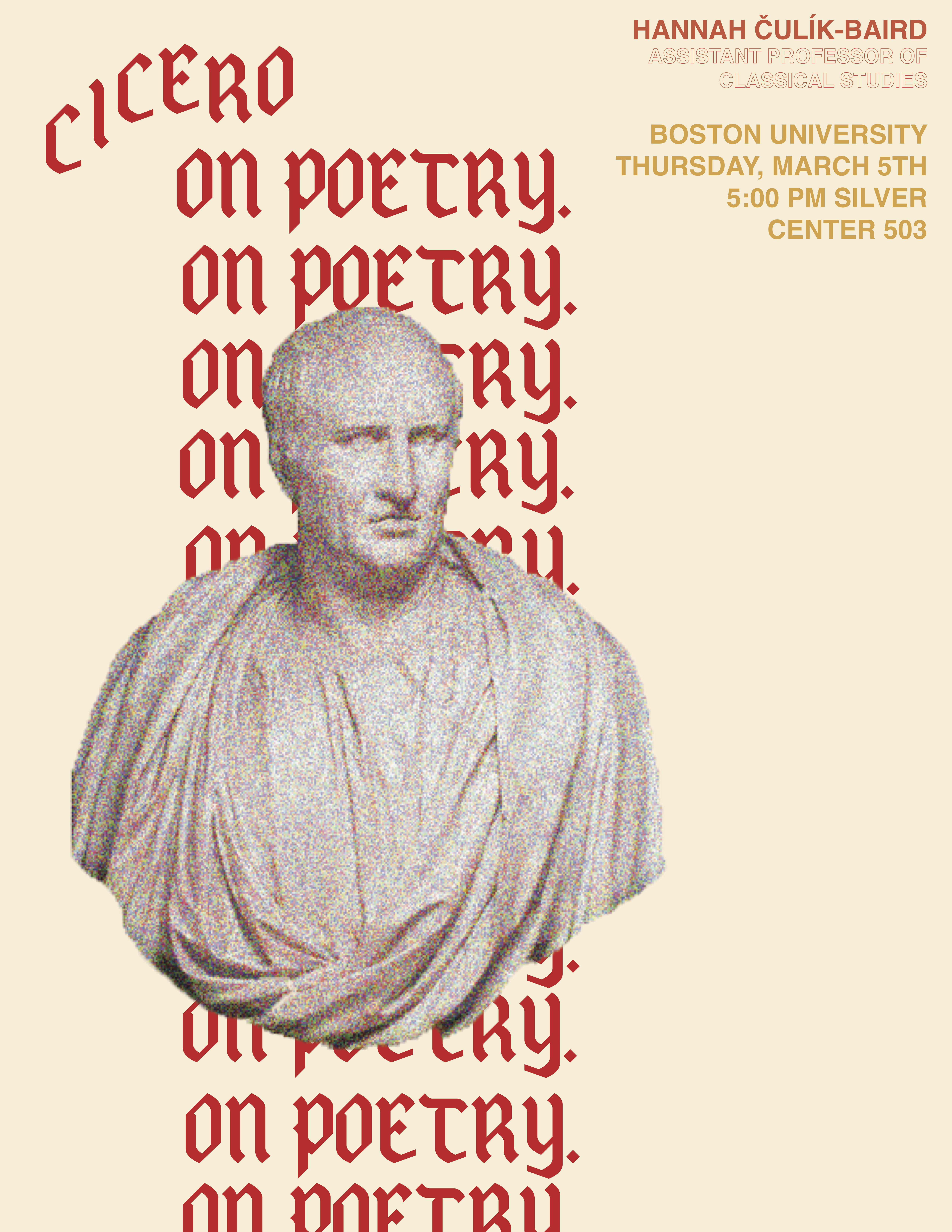 - 27 April 2022, “Cicero and the Early Latin Poets,” invited speaker at MIT Ancient & Medieval Studies Colloquium Series (via Zoom). [recording]